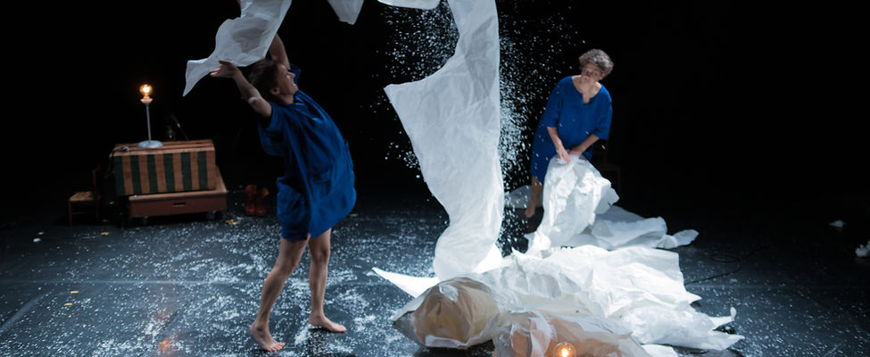 Sans être dans une transcription littérale du titre de la pièce je souhaite utiliser le papier dans mon approche scénographique de cette oeuvre. Je veux, au même titre que l’auteur de la pièce, l’utiliser comme matière et support pour inventer les formes, les volumes et les espaces de jeu en utilisant de grands rouleaux de papier kraft blanc. Le papier kraft, matière pauvre et brute, est le support idéal pour créer l’espace scénique propre à ce texte que je veux progressif, indéfini, éphémère, fragile, plastique et poétique. Les deux actrices inventeront et moduleront continuellement l’espace en manipulant en direct le papier donnant l’impression que tout naît de lui, que c’est lui qui insuffle le mouvement de l’histoire, des corps, des lumières, des objets. La manipulation du papier produira un univers sonore en direct qui pourra être enregistré, amplifié, transformé, accompagné par le musicien/régisseur présent sur scène. La manipulation en direct d’une matière aussi plastique que le papier renverra l’enfant au plaisir qu’il éprouve lui-même à la découper, la coller, la plier, à écrire ou à dessiner dessus.